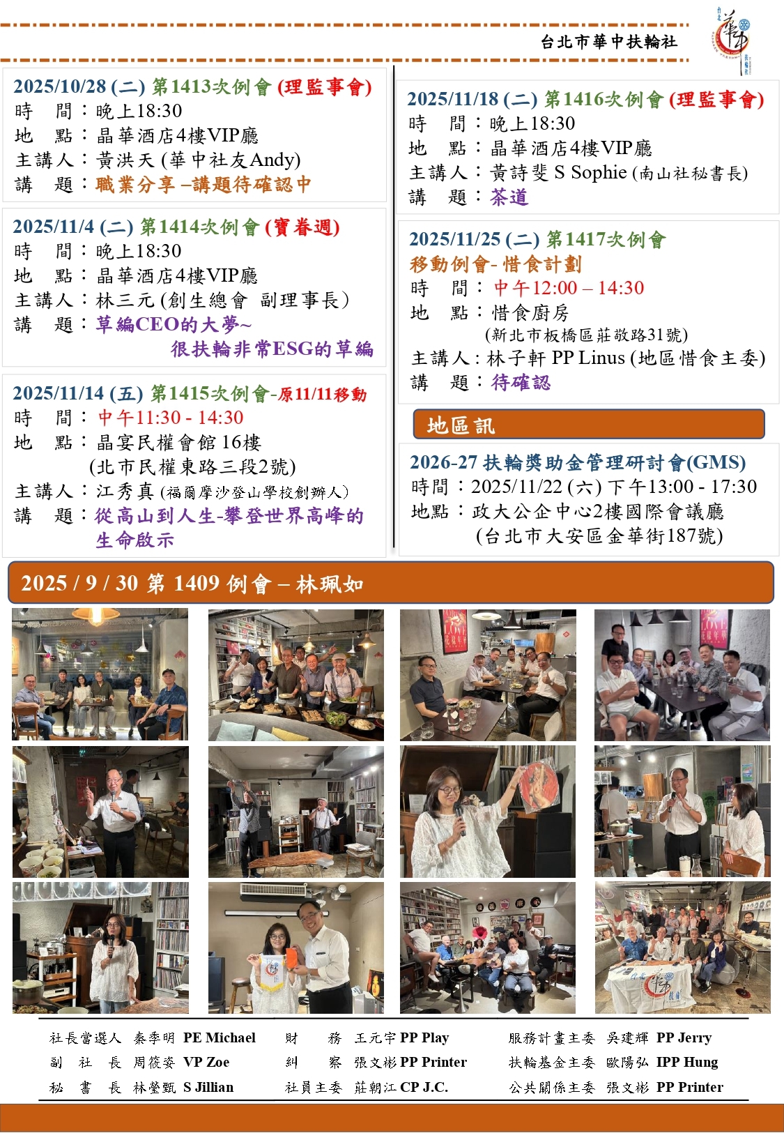 例 會:台北晶華酒店 例會時間:每週二晚上18:30~20:30