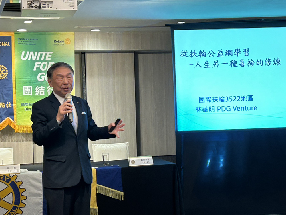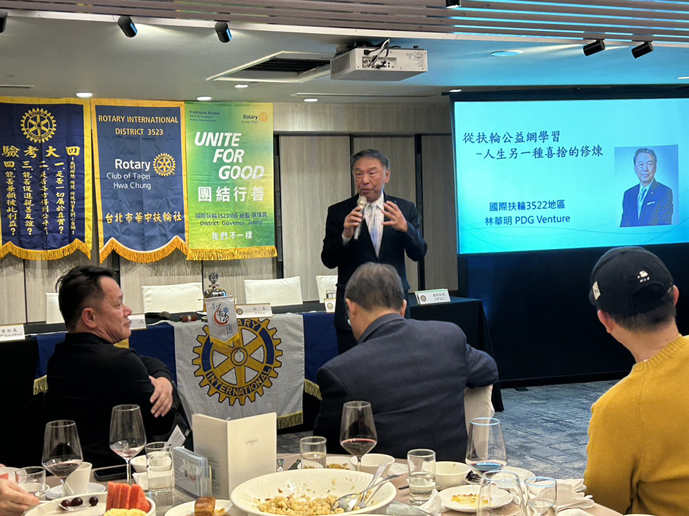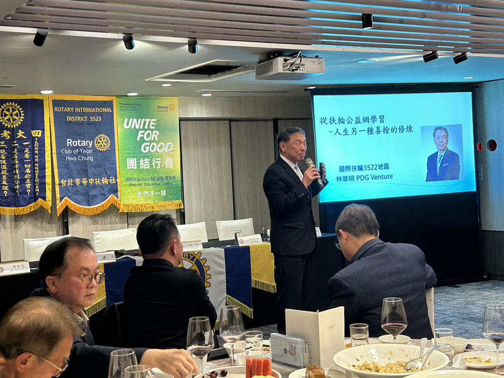 2026/1/13(二)第1424次例會/地點:晶華酒店主/講人:林華明PDG Venture(東門社)/講題:從扶輪公益網學習–人生另一種喜捨的修煉
